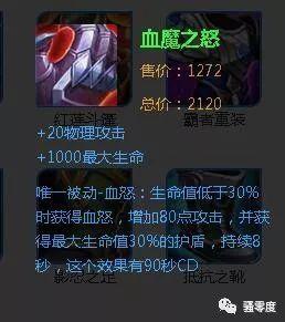 作为防御装的血魔之怒,抛开增加的20物理攻击不算,其被动“血怒”会提供最大生命值30%的护盾。