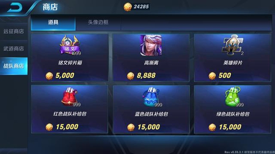 战队商店中还新增了英雄碎片,结合上次更新的内容,战队商店总共有3种五级铭文、高渐离,以及铭文碎片礼包。五级铭文是随机获得,而价格比几乎跟铭文碎片礼包差不多,所以这个五级铭文没有丝毫用处,如果是定价15000战队币,完全没有必要去兑换,直接兑换铭文碎片礼包更划算。