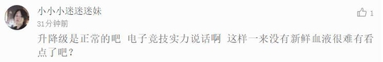 也有玩家说固定席位将会降低职业比赛中各队伍间的竞争性,而且长时间没有新鲜血液的注入,比赛将更加枯燥没有看点,没有新战队的加入,比赛也会逐渐产生视觉疲劳。
