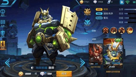 廉颇地狱岩魂皮肤888点券,奇丑无比的造型,难道因为是一个坦克需要扛伤害,就可以把这造型设计成这样?设计成这样就算了,可你卖这么贵,又是什么原因呢?是因为其特效爆表?还是皮肤自带伤害?
