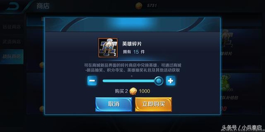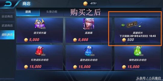 虽然只有两枚英雄碎片,但是仅需要1000战队币就可以兑换。 关键是战队币的获得并不是很难,哪怕每天签到不打战队赛,随着时间积累也可以获得许多。
