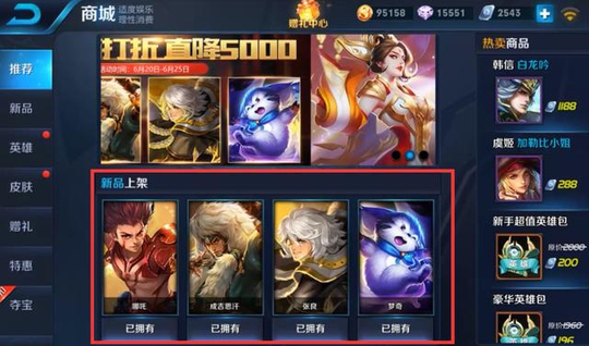 因为这4个英雄打折所以在商城推荐里这4个英雄排在最前面。