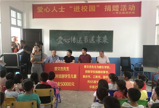 就在昨天,王者荣耀主播大锤哥专程赶往岳阳梅仙镇,为大山学校里的贫困儿童和老师捐赠资金五万元!同时还以个人名义为两所学校建成了两间“文杰书屋”,同时捐赠出各类图书 1050 本价值 25200 元。