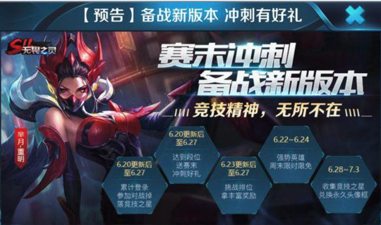 正式服内的海报如下所示,6月20日(本周三)更新后开启排位冲刺活动,在6月27日将会结束,这也就意味着S12赛季将在6月28日开启,与之前的爆料时间一致。