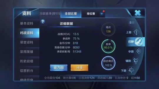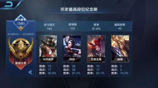 打了120场马克成功登上国服,也是单排到48星93胜率的打野位,评分kad还是和以前玄策一样高的吓人,唯一不同的就是这次是单排上的国服!!