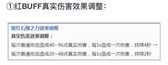 还有一个方面就是红buff这次可是大出血了,普通攻击的真实伤害直接就大打折扣!这下子我们的射手英雄的存活机会又下降了不少~