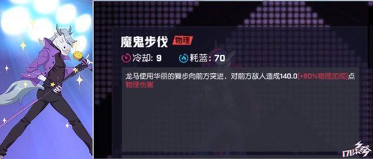 这还不算,他的一技能是个突进技能,往某个方向冲一小段技能并造成伤害。这种技能会的人太多了比如王者里阿轲、花木兰、赵云都会,但王者里这三个英雄的技能分别叫“瞬华”、“空裂斩”、和“惊雷之龙”,和英雄外观、英雄背景故事没什么联系。而《非人学园》里,龙马的这个移动技能叫“魔鬼的步伐”,一听就让人想起了那首歌:在地上摩擦、摩擦摩擦、似爪牙,是魔鬼的步伐!