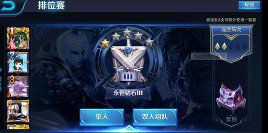 在接下来就是永恒钻石了,刚到这个段位的玩家可能一开始还不适应,因为这个段位开始的排位就进入了征召模式了,开始ban英雄,双方还不能选择一样的英雄,这样就容易让很多玩家原来用的很习惯的英雄却没机会用了而且选英雄的时候时间比较短,又有先后顺序,自己选了也不知道队友还会不会选到同样的职业的英雄。所以进入这个段位的玩家很经常会遇到开黑的队伍,容易被人套路了。所以最好还是选择一些强势的好友一起开黑方能更容易的晋级了。
