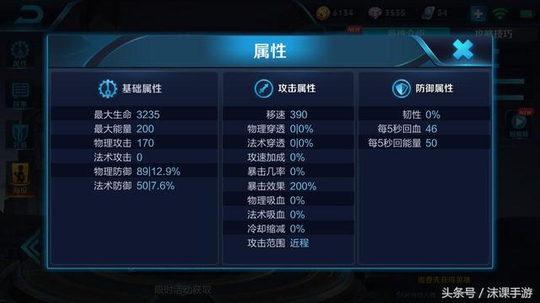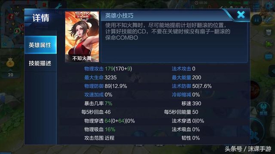 每一个英雄都有一个属性栏,我们就拿不知火舞来说,这个英雄属于一个法师,在英雄介绍中我们打开属性栏,从中我们可以看到该英雄的详细信息,以上说了,不知火舞原本的最大生命值为3235、最大能量为200,这是在没有装备以及没有铭文增益下的情况,每一个英雄都有着基础属性,而这大生命值为3235、最大能量为200正是不知火舞的基础属性。