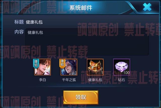 最近就要一个新手玩家刚刚注册账号,结果弹出了健康系统的对话框,而且不填的话无法进行游戏。因为玩家已经成年了,所以按照操作和提示一步一步的进行了填写。填写完之后,玩家收到了系统赠送的奖励。