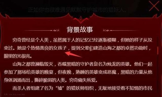 典韦的穷奇皮肤是这个系列皮肤的最后一款,它的设计背景是取自山海经:“其上有兽焉,其状如牛,猥毛,名曰奇穷,音如獆狗,是食人。”这款皮肤的设计结合了典韦原本的造型,延续了之前的黑红相配之色,还结合了牛角和猛兽的锐利尖爪,给人一种十分霸气的感觉,更是让人一眼看去就是凶猛可怕!