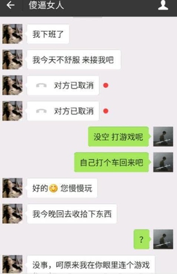 刚开始的时候,是女友主动找的玩家,说自己下班了,而且自己最近不舒服,来接我吧!但是过了一段时间都没看到玩家回复,女友就直接语音聊天过去了,但是电话刚响起,对方就马上挂掉了,这样女友非常生气,这人不是在吗?后面玩家直接回复,没空打游戏了,自己打个车回来吧,女友直接回复好的,你慢慢玩,今晚回去收拾东西,玩家直接来个问号.