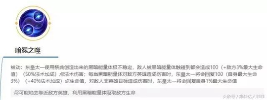 出吸血书的话,就更可笑了。东皇如果1技能可以打到人,那被动带来的回血效果要比一技能法术伤害加成带来的回血效果要高的多。