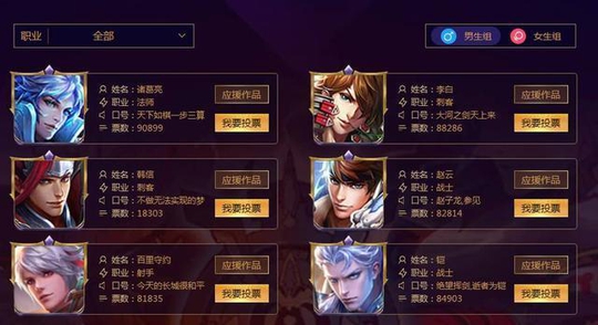 逍遥君发现玩家更喜欢给女英雄们投票,这让男英雄们可怎么办呢(当然除了梦奇这个小宝宝是个非人类英雄)。那么问题来了,小伙伴们你会准备投给那些英雄呢?欢迎在评论处留言哈!