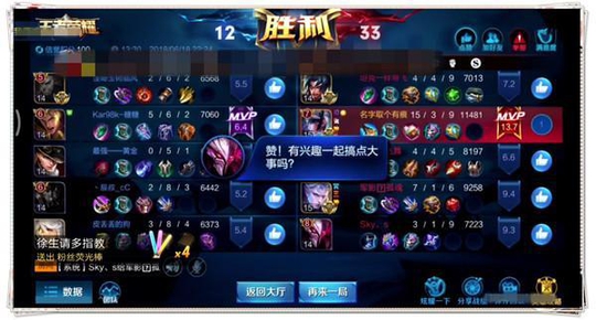 铠有点小激动,话比较多,他表示第一次遇到这样的露娜,也是第一次遇到这样的惊人战绩,估计他此时再宿舍肯定叫来了他的室友一起过来看这个大神露娜了,大家发现没,其他队友都在称赞露娜,唯独关羽没说过话,估计都被吓懵了。