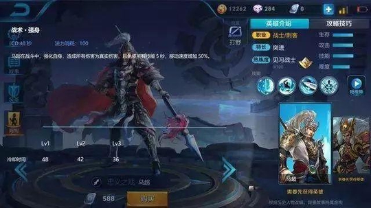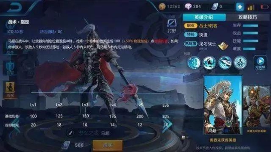 马超在战斗中发起冲锋,对命中的敌人造成伤害并且锁定五秒钟,如果敌人5 秒内未死亡,则马超五秒内无法移动。这个技能看起来像是一个置之死地而后生的技能啊。马超的二技能5秒控制不得不说十分的强力!但是这副作用也十分的强力!5秒时间里打不死还得自己被控制。不过5秒时间除了一些特别肉的英雄基本都可以杀死了吧?看来马超是一个必须出纯输出的英雄啊,或者出纯肉装打控制效果?