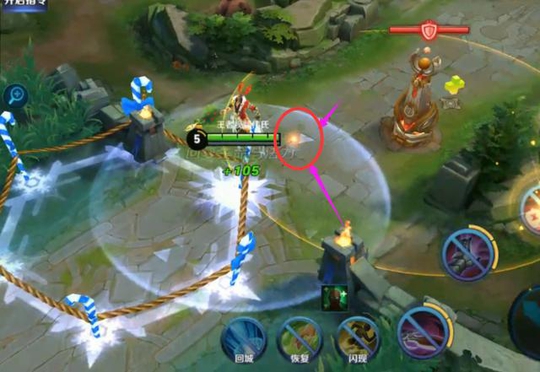 李白的方法很简单,就是箭塔的子弹快打到李白的时候,李白只要用2技能的时候就可以轻松的躲过箭塔的攻击。