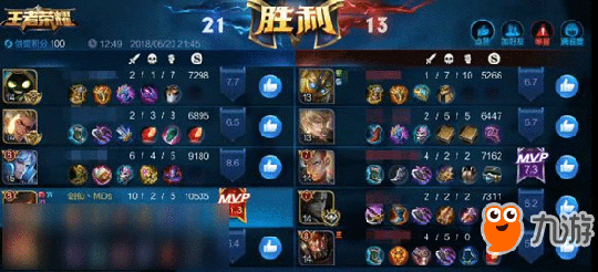 这局巅峰赛里剑仙遇到的队友都很不错,但剑仙的起到的作用无疑是最重要的,整局里BUFF就没停过,还反了对方几个蓝让给队友,两条龙也把握住了,可以说是真正的“制霸野区”,最后也众望所归高分拿下MVP。