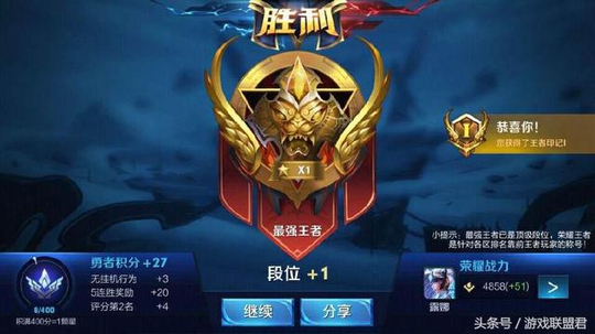 最终,这位小伙伴经历了一周的排位赛后,成功依靠单排上到了王者段位,获得了一个王者印记,露娜的荣耀战力也打到了省级相当靠前的名次。这位玩家用自己的实力告诉了各位小伙伴,露娜即使是在当前版本生存环境恶劣的情况下,依旧能够拿出来使用,以露娜为本命的玩家千万不要放弃的理想。