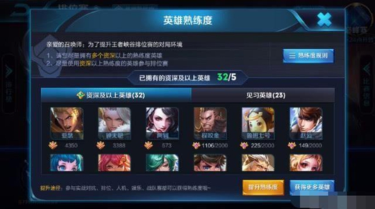 因此,在之前的时候,王者荣耀官方策划师Donny就提出一个设想,在以后的排位赛中再新增一个条件:拥有资深熟练度英雄数量达到5个以上才能打排位。这个方案提出之后确实受到了不少玩家的支持,毕竟这样做可以进一步的限制玩家在排位中练英雄“坑队友”的现象,即便是在高分段中的排位。不过这个方案只是提出,却一直没有上线。而最近一段时间,王者荣耀版本更新之后,这个功能上线但未应用,在S12赛季是不是会上线运行成了玩家的一致期待!