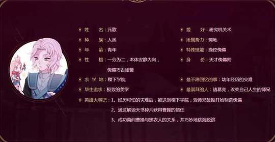 元歌在背景故事上,是诸葛亮的师弟,同时也跟曹操有关,曾潜入曹军战船上,最后跳海逃走。目前官方正在预热元歌,已发布相关介绍和秘闻,新英雄将在7月初上线正式服,预计具体时间是7月3日或7月5日,预计价格是13888金币。元歌进入水晶商店的消息不知出于何处,但至少官方从没说过,未来新英雄都会存在金币/点券的获取途径。