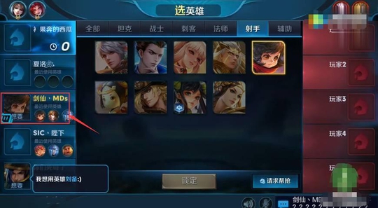 大西瓜本来是想用李元芳这个英雄的,但是剑仙并不在顺位第一,所以说就不太好选,于是乎剑仙试图让一楼的游戏玩家帮抢一下李元芳,不过一楼的玩家自己选择了武则天这个英雄。当然这也无可厚非,不过正是因为这样子,剑仙才注意到了这个游戏玩家的ID。