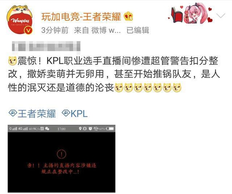 一看到KPL职业选手直播间惨遭超管扣分整改,撒娇卖萌并无卵用,甚至开始推锅队友,是人性的泯灭还是道德的沦丧!