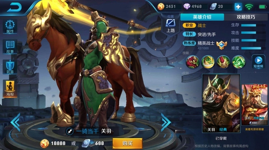 第一名关羽;我们的关大爷,峡谷唯一一位骑马的英雄,也是从前期强势到后期的英雄,前期正补刀呢,一匹马冲来,只看见一道刀光闪过,半血没了。刚杀完人,还有接近半血正得意时,一道刀光劈来屏幕黑了。被抓想跑,一匹马不停的把你往回撞,跑都跑不了,打团不停的被撞来撞去,好像被人当足球踢。脆皮更惨,一刀半血,辅助帮忙