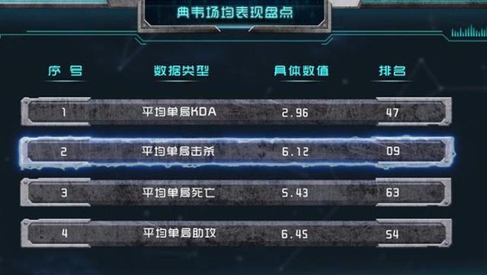 而典韦的场均表现看上去数据不是很理想,不过仔细分析还是非常不错的,首先他的单局KDA是2.95,这个数据在全英雄中是排名较低的,但是大家都知道典韦作为一名战士,很多时候都是冲锋在前,基本上都要吸引对面的第一轮火力,这对他的数据非常不利。
