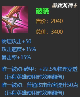破晓攻击中附带的额外伤害和穿透效果让后羿鲁班等攻速流射手伤害突飞猛进,成吉思汗也不例外,他的被动和大招使他不需要攻速便可以频发触发攻击特效。