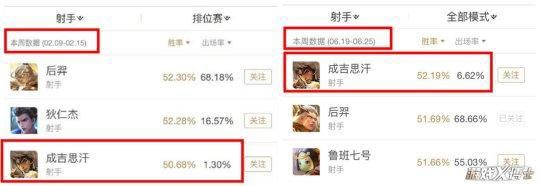 百里守约刚出的时候无论是胜率和出场率都十分感人,天美增强了他的伤害后成为非ban必选的明星射手。