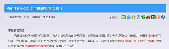 其实对于王者荣耀中的外挂,天美也是非常不愿意看到的,甚至这次的封号也仅仅是在官网进行了公示,官博等途径均没有进行公示,在饭饭君看来,王者荣耀之所以好玩,就是因为没有外挂,不用像吃鸡一样怀疑对手开挂,打不过那就是自己的技术不行,不过,自从知道了有挂之后,也算是给了自己一个打不过别人的理由吧!