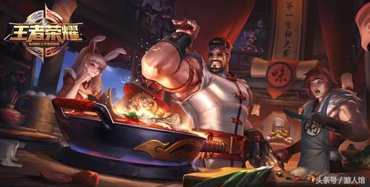 另外还有一个英雄就是程咬金,这个英雄现在还是比较火爆的,而他的厨神皮肤也爆了出来,可以看到程咬金正在给大家做一道大餐,周围的公孙离,安琪拉都在翘首以待,等着吃这道美食呢。不过我在想程咬金的几个技能的特效是什么?多半就是拿着锅铲到处旋了。