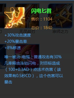 这个装备有很多的射手带无双铭文可以第一个出,这个装备在后期也是非常鸡肋的装备,因为没有伤害的加成,加的攻击速度还不如秒一个纯净苍窘这样还有一个主动技能的装备,后期还可以抵挡下爆发非常强的刺客英雄,有时候因为纯净苍窘还可以救下自己一命,而后期的电刀实在没有什么用处,大神都视为这个装备是鸡肋装备,而还有很多的新手却当成宝物。
