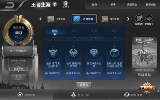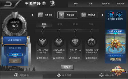 ▌参与并完成各个战场的探索目标,即可累积战场探索度~