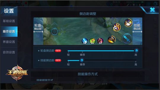 为了照顾到每名召唤师的战斗操作体验,游戏内提供了局内轮盘摇杆和技能按钮位置自定义调整功能,召唤师可以在游戏局内的设置界面中,根据自己的机型大小和操作手感分别调节左侧摇杆轮盘的侧边距和右侧技能按钮的侧边距。