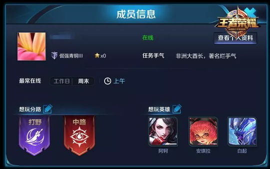 在小队界面中点击队员头像,即可查看他的在线时间、擅长分路和英雄等信息,更方便“蹲”到自己的队友,一起组队开黑~