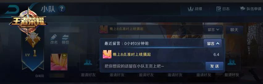 我们还新增了小队的留言板功能,所有队员都可以在这里发言,组队信息、日常闲聊、讲讲段子......相信这个功能能瞬间增进队员之间的感情呢(有小队缺话痨吗?妲己宝宝要来报名啦!)~
