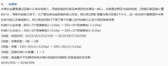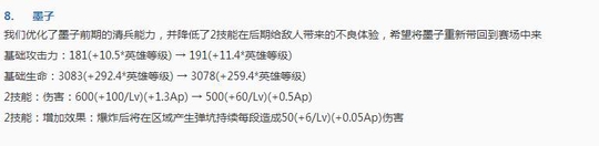 这个英雄虽然拥有一段位移和两个控制技能,但是在峡谷中却很少有人使用,主要原因就是发育周期实在是太长了,并且清理兵线的能力太弱,因此在此次更新中,其二技能的伤害虽然减少了一点,但是却多了一个弹坑效果,在以后被兵线将不再是其的牵绊了!