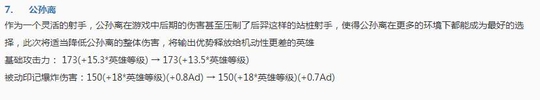 作为当前版本最强势的射手之一,公孙离在此次更新中也是得到了削弱,但是技能机制和冷却时间却没有得到改变,所以在以后其还会是T0级别的ADC!