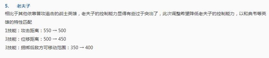 不管是职业联赛还是日常排位中,老夫子的出场率都相当之高,在这一次更新中,其一三技能的距离直接减少了50,而大招在捆绑敌人后的移动范围却增加了50,可以说是对其的一种压制吧,在以后得排位中影响应该不是很大!