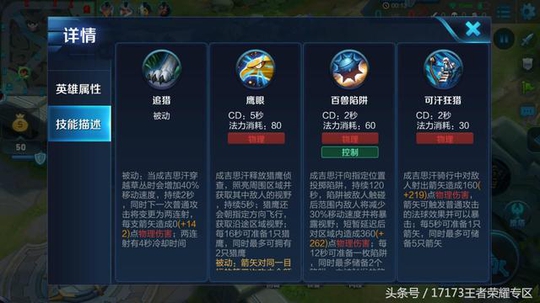 该技能在成吉思汗的发育过程中起着至关重要的作用,在前期的发育过程中将陷阱扔至河道的草丛,可以有效的放置对手打野位置的偷袭,使成吉思汗的发育变得更加安全。在团战或追击的过程中同样可以有效的利用该技能减速目标并轻松击杀。