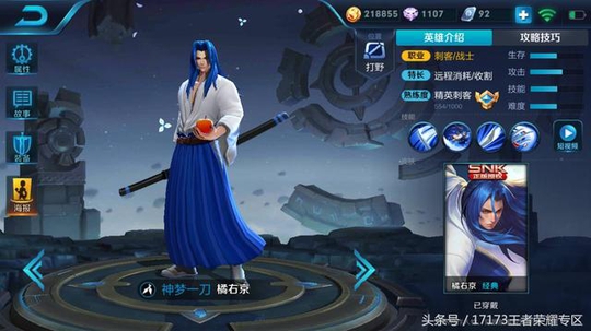 橘右京的王者荣耀中第一个拥有技能吸血效果的英雄,也是SNK授权的最后一个英雄。早期的王者荣耀物理输出英雄在选择泣血之刃等吸血装备后是有吸血效果的,而自从取消了物理输出英雄的技能吸血效果一段时间后橘右京就横空出世了。当前版本的橘右京大多数以纯输出装备的爆发流为主,有着非常不错的位移以及控制能力,完美的技能组合连招可以轻松的秒杀敌人,技能的回血效果可以让橘右京有着非常不错的续航能力,在被敌人追杀时利用控制技能以及大招的回血效果都有可能对敌人进行反杀。