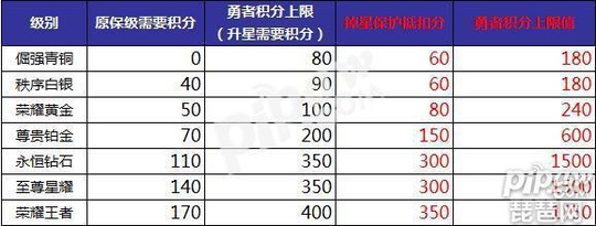 此外,新赛季勇者积分满后不会再全部清零晋升为一颗星,而是打赢一场排位后额外增加一颗星,打输只会扣一次掉星保护的勇者积分。具体段位积分表如下: