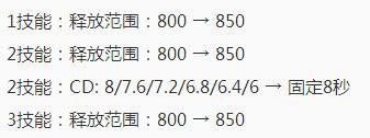 王昭君的平衡也很简单,就是3个技能的射程都远了一些,对她消耗有一定的帮助,但是2技能的cd也变长了,之后肯定不用主升2技能了,控制能力有稍微的下降,应该还是一个冷门法师。