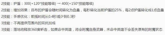 吕布的2技能加强极大,不仅护盾提高还能转换成血量,无论是团战还是消耗都很有用,至于大招看上去是削弱一点,不再增加双抗。但是就小编在体验服玩的这几把吕布来看,整体说来他的强度是有所增加的,可能出场率也会提高。