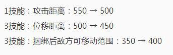 老夫子也是一个削弱,1技能和大招的距离被削弱了一些,先手的控制能力大为下降,下次大家玩老夫子的时候一定要注意这一点,大招空放就尴尬了。