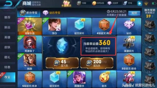 在抽取这个水晶之前,我们需要先保证我们的幸运值在一个数值上面,这个数值大约也就等于三百六十吧。