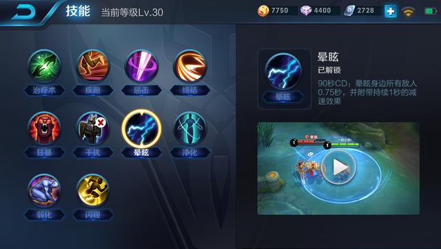 么错!连召唤师技能都是蓝色的!在前期,我们装备还没成型前,可以带一个晕眩来补充我们的控制,毕竟亚瑟在4级前虽然对拼能力不错,但是留人能力比较一般,所以晕眩是个好技能!