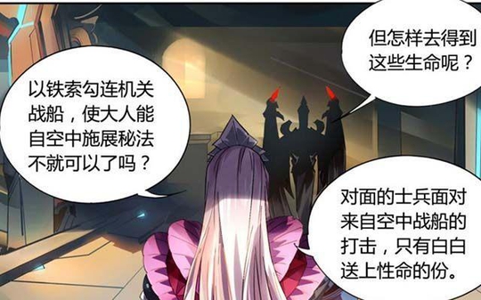 正在曹操在苦恼如何快速赶往奇迹之地,好阻拦诸葛亮和周瑜获取奇迹力量时,忠心耿耿的神秘人也在考虑如何帮助自己的主公曹操,同时又可以获得足够多的生命来增强他的魔道法术。看神秘人这一副像蝙蝠一样的怪模样,就像个吸血鬼似的,时刻想着有哪些新鲜生命可以为他所用。而元歌也趁着这个机会向神秘人献策,说是只要把战船用铁索连接起来,就可以用魔道法术笼罩整个战船,加快航行。